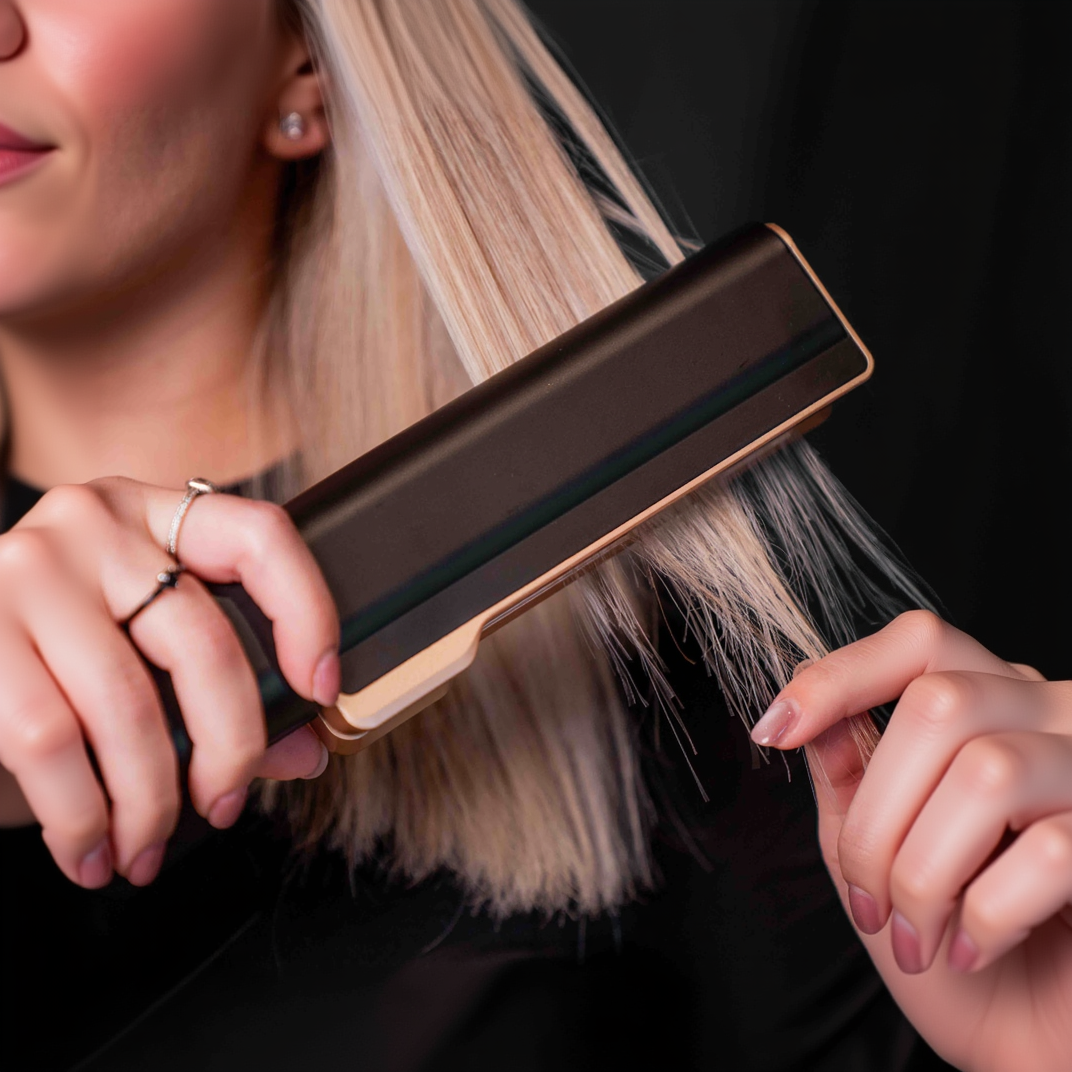 Dipende dalla lunghezza e dallo spessore dei capelli, ma in media riduci quasi della metà i tempi rispetto a phon + spazzola + piastra. Per una lunghezza media bastano circa 10–15 minuti per passare da capelli umidi a lisci e pronti.
